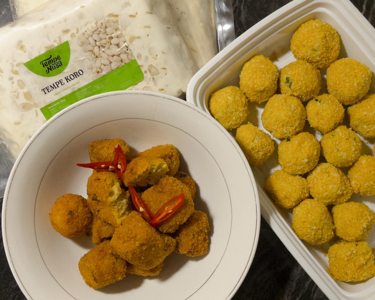 Bola-bola nugget tempe koro